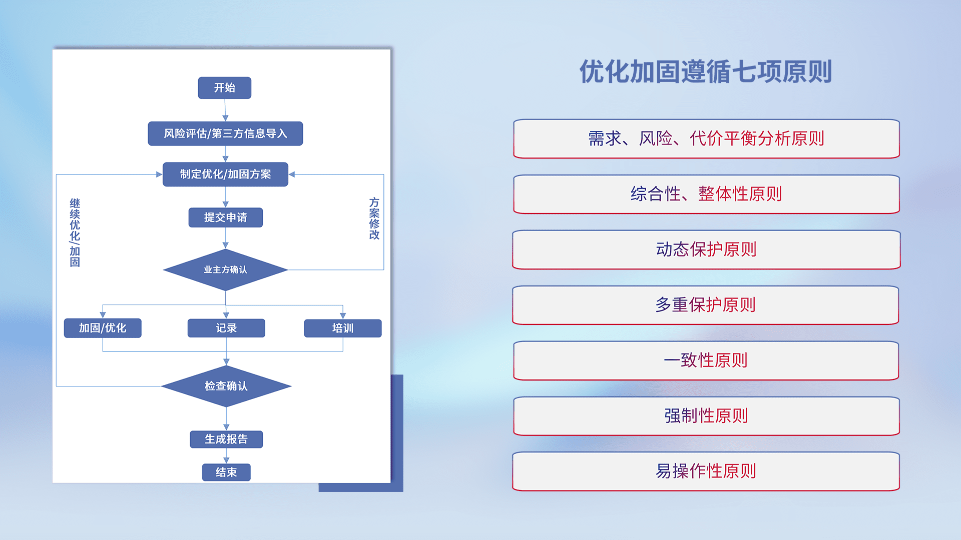 最大程度利用现有资产,,对评估发现的问题进行封堵与整改,,,,防止漏洞被利用,,,,提升整体网络安全性,,,为客户带来高标准的优化加固服务。。。。