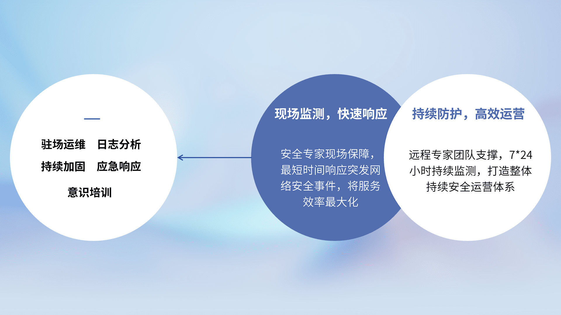 针对客户行业特性,,提供专属的一站式安全管理服务,,帮助客户全面感知网络空间威胁,,,通过安全专家的线上、、、线下防护支持,,,,实现风险闭环,,将安全保障常态化,,,为客户打造常态化安全运维运营服务。。